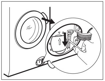 - Na niektorých spotrebičoch sa dajú dvierka otvoriť v prípade núdze potiahnutím rúčky smerom dole pomocou skrutkovača alebo podobným predmetom.
